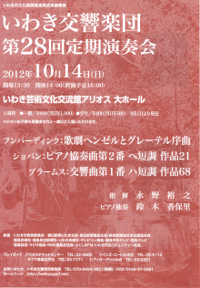 以前にも告知させていただきましたが(⇒過去記事)しましたが、いわき交響楽団の定期演奏会がいよいよ今週末(10/14)に迫って参りましたので再度ご案内させて下さい。